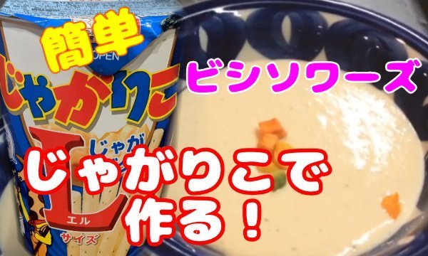 じゃがりこ&オニオンスープをレンジで簡単して牛乳&水を加えミキサーに