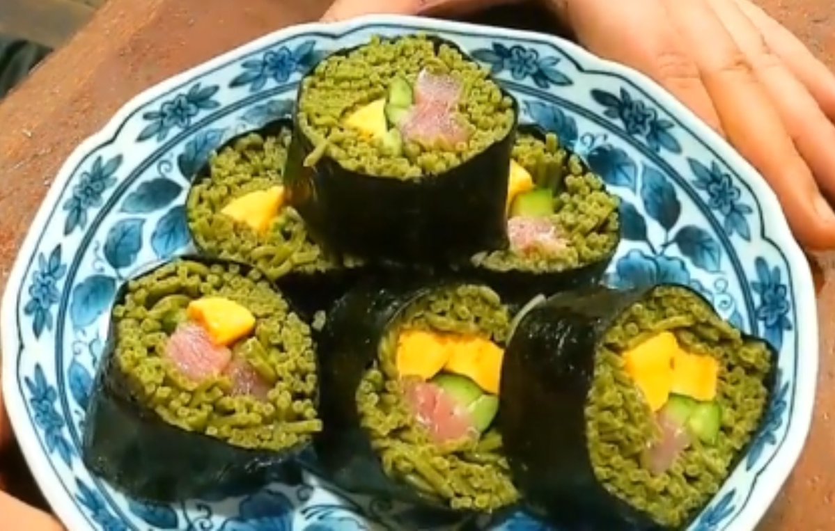今年は茶そばで恵方巻作った〜
