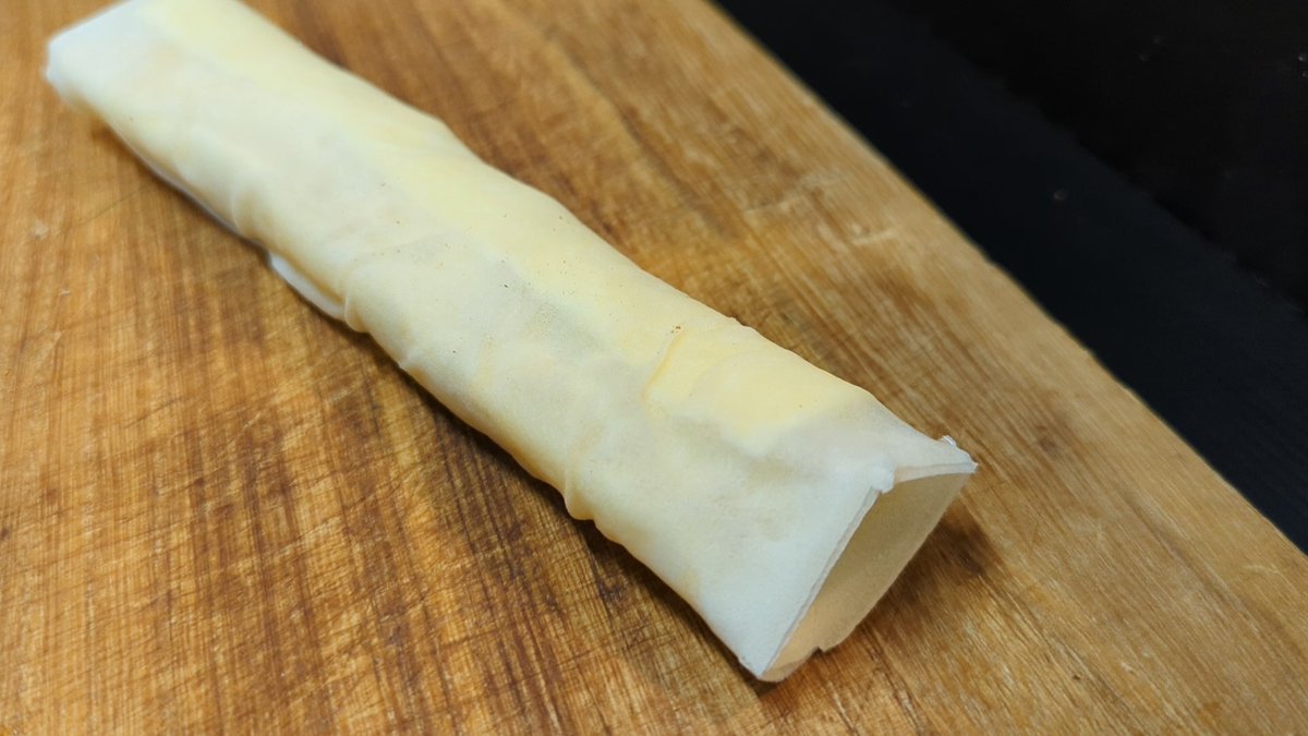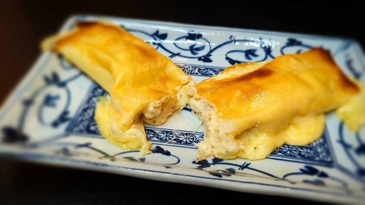 春巻きの皮に、溶き卵を塗り!チーズとポテサラを巻き込んだらトースターで焼くだけ〜サクッとろっでおやつにオススメだよ↓↓↓レシピ