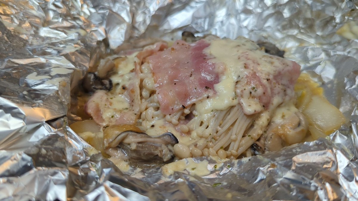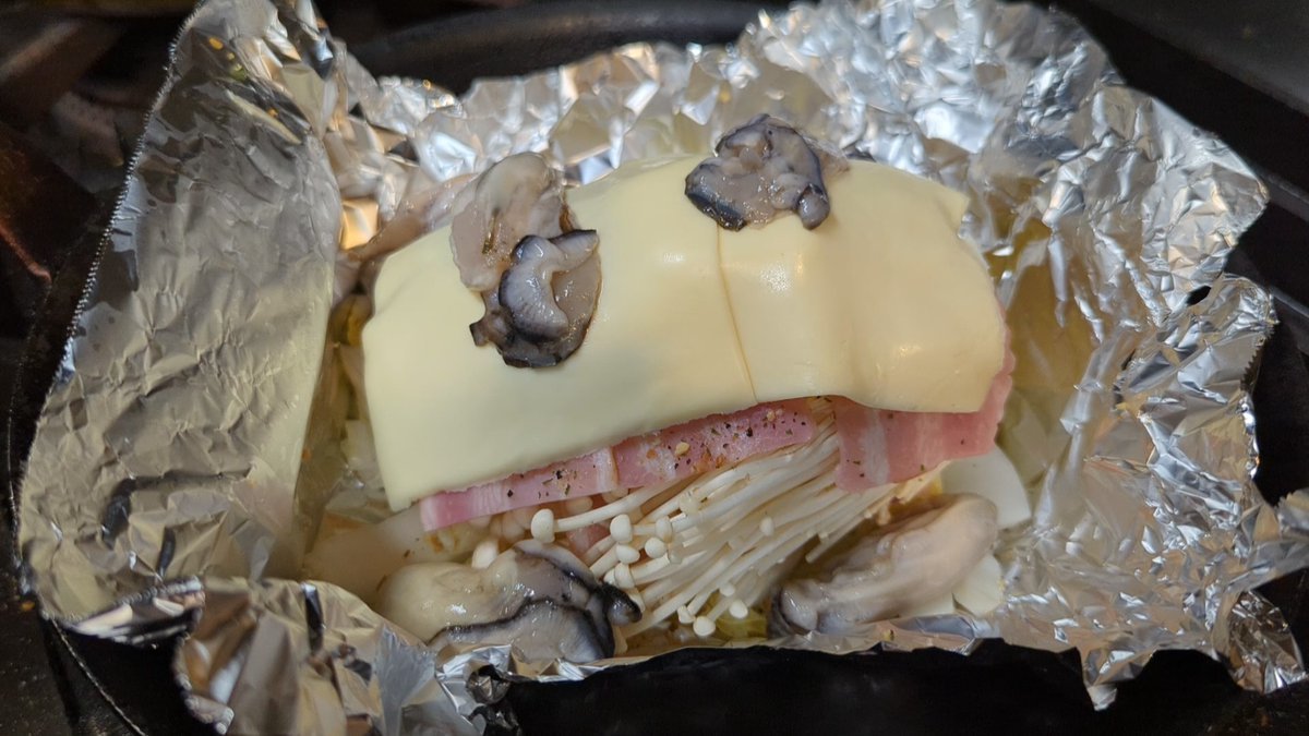 牡蠣やベーコン!チーズなど材料をアルミホイルで包んだら、フライパンで焼くだけで絶品のおつまみホイル焼きが作れるよ!↓↓↓レシピ