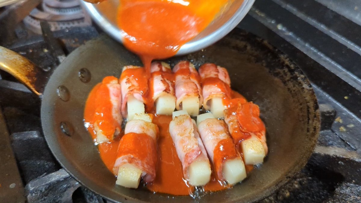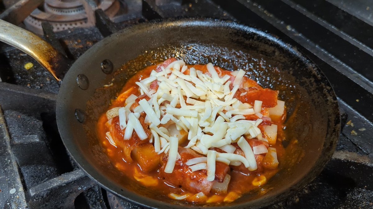 韓国風ピリ辛タレを煮絡め!仕上げにチーズトッピングしたら病みつきになるよ〜↓↓↓レシピこちら